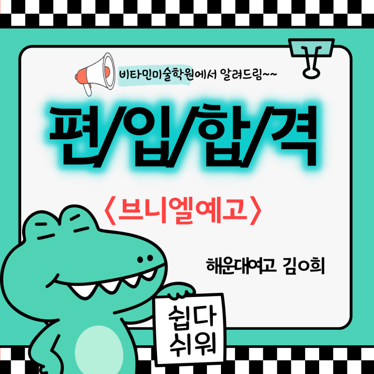 안녕하세요~~ 부산지역 유일!! 예고 전문 비타민 미술 학원입니다. 오늘은 편입전형에 대한 내용을 포스팅 합니다. 앞전 포스팅 내용 중 한국조형 예고 편입에 관한 내용이 아래에 링크를 해 놓았으니 세부적으로 궁금하신 부분은 아래의 내용을 참고하시면 좋을 것 같습니다. 오늘 소개할 내용은 한국조형 예고 편입이 아닌, 브니엘 예고 편입에 관한 내용을 중심으로 소개를 합니다. 비타민 미술 학원은 부산지역 유일한 예고 진학을 전문적으로 지도하는 미술 학원입니다. 예고 진학만을 위한 학원이라 일반적인 예고 진학과 더불어 편입전형으로 진학하는 경우가 있습니다. 일반적인 전형은 1년에 한번 10월에 전형을 실시하고 편입의 경우 평....... <img src="https://blogthumb.pstatic.net/MjAyNjAyMThfMjE4/MDAxNzcxMzg4ODQ0Njk3.3zrRZTwcQ7BwOmYKFmvC-niWm1DeZqT_2GeMkwh8MiEg.8ja2KLUunroznpJsCqneoUB-D9iMDEKMGlxdHruySY8g.PNG/002.png?type=s3" />