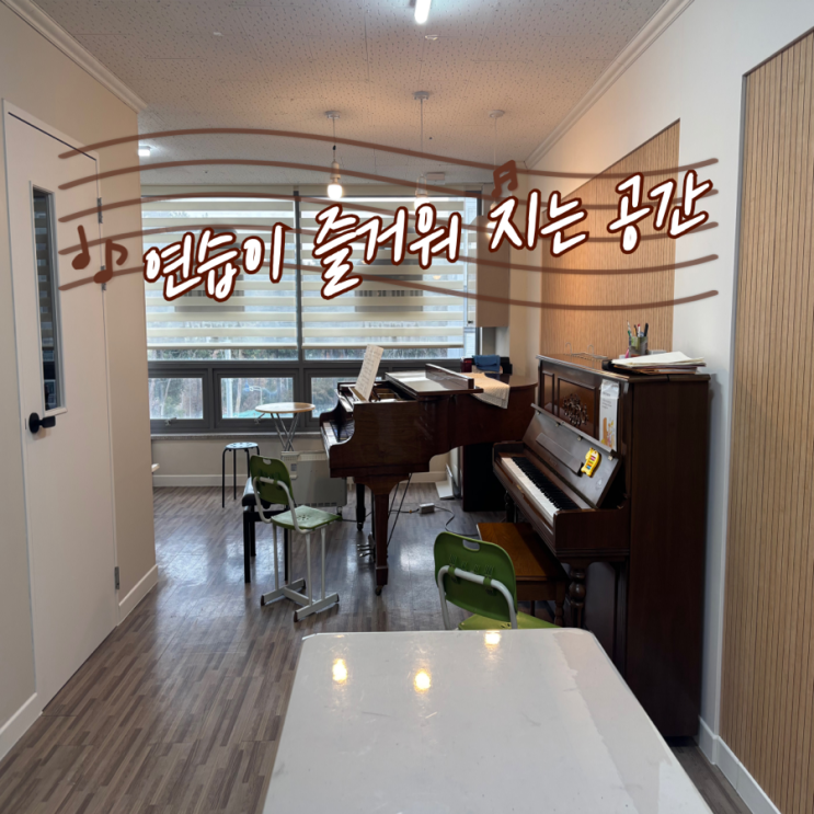 지난 11월, 소리엘 피아노가 더욱 편안한 연습 환경을 위해 새롭게 단장했습니다. 연습하러 오시는 여러분이 조금 더 여유롭고 즐겁게 머물 수 있도록 공간 곳곳을 알차게 꾸며보았어요. ⸻ ☕ 편하게 쉬어가는 커피존 생겼어요 연습 전 잠깐의 여유, 연습 후 달콤한 휴식… 그럴 때 필요한 작은 쉼표를 위해 커피존을 마련했습니다. 커피, 차 등 따뜻한 음료를 언제든지 편하게 즐기실 수 있어요. 혼자만의 힐링 시간 보내기에도, 다른 분들과 소소하게 담소 나누기에도 좋답니다. (조만간 커피머신도 들어온답니다 ^^) ⸻ 악보 출력이 필요한 순간엔? 한쪽에는 노트북과 프린터가 상시 비치되어 있어 필요한 악보를 바로 찾아 출력하실 수....... <img src="https://blogthumb.pstatic.net/MjAyNTEyMTFfMTkw/MDAxNzY1NDM0NjM1MzAy.csvVW2QXN1gVd_Jv3GgF_jxMJ_vcUnm_qwruyFsYnl8g.5EJC7GhpvaQNq20BTU4yC5VJK-RR2d_xXvvSetf0o7Qg.PNG/%C1%A6%B8%F1%C0%BB%A3%AD%C0%D4%B7%C2%C7%D8%C1%D6%BC%BC%BF%E4%A3%DF%A3%AD001.png?type=s3" />