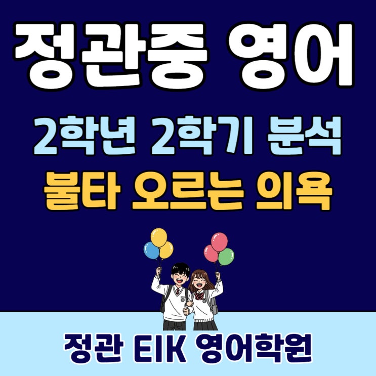 정관중학교 2학년 2학기 기말고사 분석 – 중등 때부터 개별 분석이 왜 중요한지 – 오늘은 정관중학교 2학년 2학기 기말 영어 시험지를 바탕으로 어떤 방향으로 대비해야 했는지, 그리고 왜 중학교 단계에서부터 이런 준비가 중요한지 짚어보겠습니다. 이번 기말고사는 객관식 21문제, 서답형 5문제로 구성되어 객관식 60점, 서답형 40점의 비율로 출제되었습니다. 중등 영어 시험에서 이 40점의 서답형이 100점을 가르는 최대 분수령이라는 점은 이제 많은 학부모님들께서도 공감하고 계실 겁니다. ■ 시험 범위 문법, 어디에 초점을 두어야 했을까 이번 7·8과 시험 범위에서 다뤄진 문법은 ✔ 현재완료 ✔ 가주어 ✔ 간접의문문 ✔ because of....... <img src="https://blogthumb.pstatic.net/MjAyNTEyMTdfMTkz/MDAxNzY1OTc3NDkxOTM3.BeHKCWMZVzHcZFShdGRQU5AHIf5BNwrk0fO81p5YO6sg.wqE2hkataIqNKCk6QVHqZVuBLdX3TY1oEGaTRuqqPb4g.JPEG/25.12.17J.jpg?type=s3" />