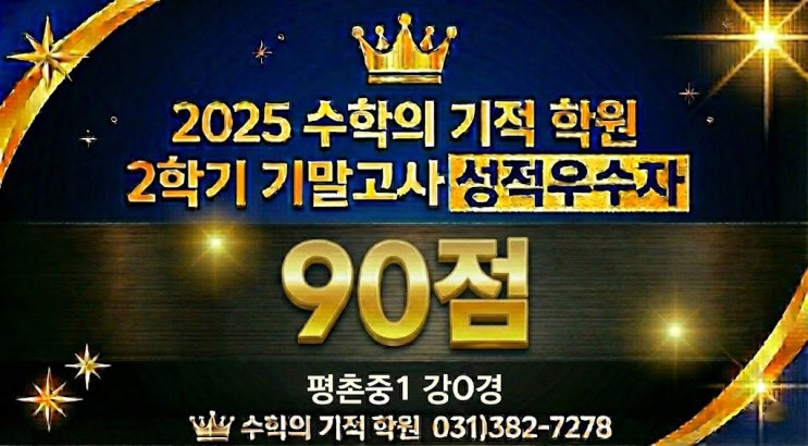 안녕하세요. 수학의 기적 학원입니다. 오늘 들려드릴 이야기는 단순히 점수가 올랐다는 자랑 글이 아닙니다. 수학 때문에 자존감이 바닥까지 떨어졌던 한 아이가, 어떻게 다시 고개를 들고 "저도 할 수 있어요"라고 말하게 되었는지에 대한, 작지만 위대한 '기적'에 관한 이야기입니다. 지금 이 글을 읽고 계신 어머님, 아버님. 혹시 우리 아이가 책상 앞에는 오래 앉아 있는데 성적은 제자리인가요? 학원을 다녀와서도 "모르겠어", "어려워"라는 말만 반복하며 방문을 닫고 들어가지는 않나요? 그 답답하고 아픈 마음, 저희가 누구보다 잘 압니다. 오늘 소개할 평촌중학교 1학년 강OO 학생의 어머님도....... <img src="https://blogthumb.pstatic.net/MjAyNTEyMThfNTkg/MDAxNzY2MDIwODU1NDYy.DwQUS3pY3-aYwBU-rIBM1cvzWCwNWH7_Gl3JM3U9Aj4g.Td4kxM2t4hh45d0IyR29ANKPzgtrxWUJV_0-u-vBcd8g.JPEG/평촌중1_곽도경.jpeg?type=s3" />