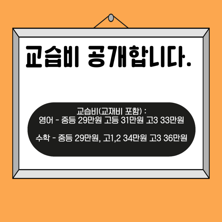 호평동 영어, 수학학원 교습비 공개합니다.