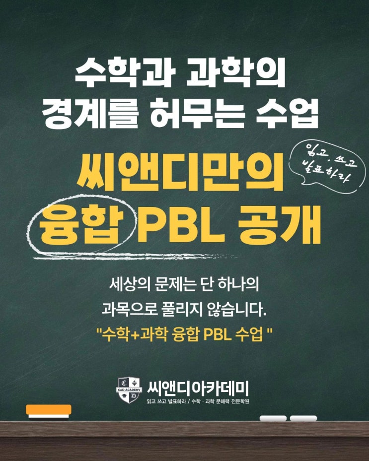 안녕하세요, 김포 운양동 수학·과학 문해력 전문 씨앤디(C&D) 영재아카데미입니다. 최근 학부모님들과 상담을 하다 보면 가장 많이 듣는 고민이 있습니다. "우리 애가 수학 문제는 곧잘 푸는데, 조금만 응용되거나 서술형으로 나오면 손도 못 대요." 이 고민의 해답은 결국 '생각하는 힘'에 있습니다. 오늘은 씨앤디 아이들이 어떻게 스스로 답을 찾고, 그 과정을 논리적으로 설명하게 되는지 저희 씨앤디만의 융합 PBL 수업 사례를 통해 자세히 보여드리려고 합니다. 1. 도입: 달라지는 교육 환경, 우리 아이는 준비되어 있나요? 최근 교육계의 가장 큰 화두는 단연 '2028 대입 개편'입니다. 핵심은 단순합니....... <img src="https://blogthumb.pstatic.net/MjAyNjAzMTlfMjUy/MDAxNzczOTExNzM5NTMy.V111ok1gCusREJWau68EAG6jBv6f_pQyQMtPt0EalcUg.j5mPQOOiZPCxCa1ixeTH1FDiyoqzvOawwws_4shL-kwg.JPEG/1.jpg?type=s3" />