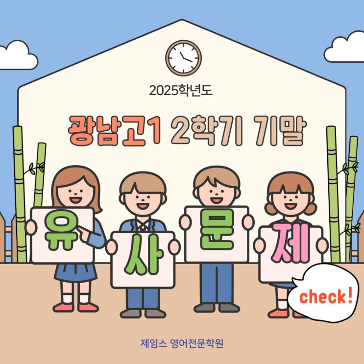 안녕하세요~ 오늘은 광남고등학교 1학년 2학기 기말고사 학교 영어시험 문제 중 제임스 영어학원 TEST와 얼마나 유사한 문제들이 많이 나왔는지 확인해볼거에요~ 본문 영작과 복습TEST에서 강조된 부분이 학교시험에는 어법 문제로 출제 됐습니다. 복습TEST에서 출제된 부분이 그대로 문제에 출제된 것을 볼 수 있습니다. 매 시간 진행되는 영영풀이 TEST를 통해 학생들이 반복적으로 영영풀이를 습득합니다. 그러니 제임스에서 내신 대비를 한 학생들에게는 아주 쉬운 문제였답니다^^ 본문과 본문 외 부분 영작TEST 진행 부분이 서술형 문제로 출제되었습니다. 제임스 TEST 통과를 위해서 외웠던 학생들은 시험에서 좀 더 쉽게 풀 수 있었겠죠? ....... <img src="https://blogthumb.pstatic.net/MjAyNTEyMTVfMjk0/MDAxNzY1Nzc2MTk5MDk5.sQ9Xo9wGg5trPTfZf9YD9NoJPCK5HlFjlStZYh5VoQ8g.ROiglZZo3LFThGU6ro4Z6lPPC5vV_HAalAHyXj8JcNUg.JPEG/2025-2%C7%D0%B1%E2-%C0%AF%BB%E7%B9%AE%C1%A6-001.jpg?type=s3" />