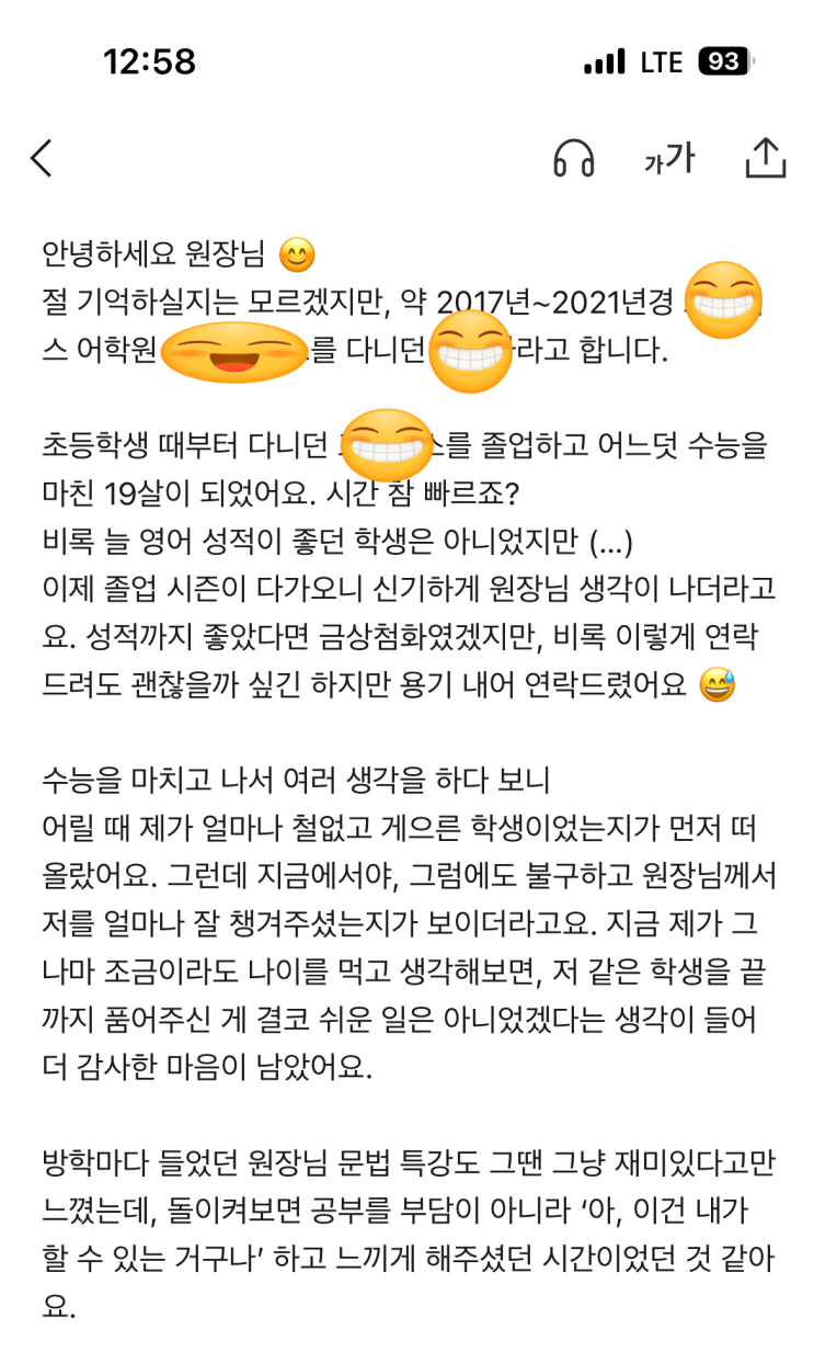 25년도 말에, 불수능을 본 한 제자에게서 장문의 카톡을 받게 되었습니다.