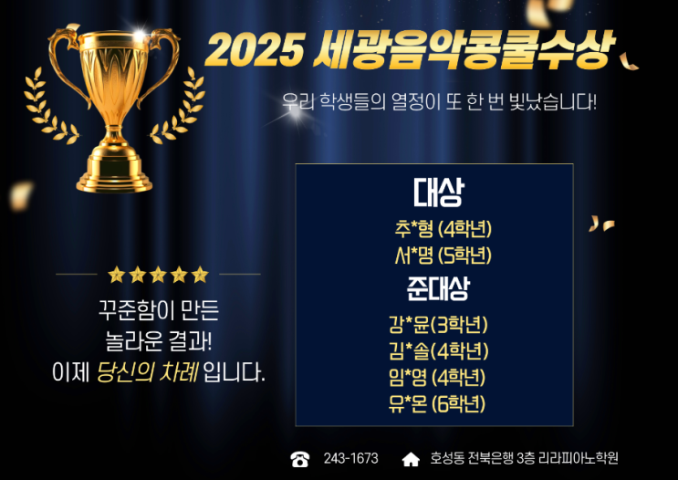[전주송천동음악학원 엘뮤직아카데미] 2025 하반기 한국 영재 콩쿠르 전원 입상 소식