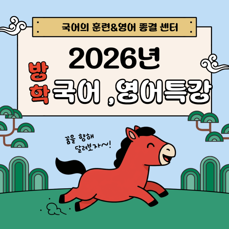 #군산 국어의 훈련# 군산 국어#군산 영어 #영어종결센터#군산 방학 특강# 군산 방학#군산 고등국어#군산고등학교#군산영광여고#군산중앙여고#군산상일고#군산동고#군산제일고#군산중앙고#군산여고 << 과목명 : 내신과 모의고사 한방에! 고등 국어 문법 특강 >> 수강기간 : 2026년 1월 8일(목)~2월 26일(목) 8주간 오후 2시-4시 수강료: 18만원 수강대상 : 2026학년도 고1/2 개설최소인원 : 5명 교재 : 고등국어 고고 문법 출판사: 꿈을 담은 틀 과제 : 매주 진도 부분 교재 문제풀이 및 프린트 문제풀이 <<과목명 : 영어 모의고사 독해 특강>> 수강기간 : 2026년 1월 8일(목)~2월 26일(목) 8주간 화/목 오후 3시-4시30분....... <img src="https://blogthumb.pstatic.net/MjAyNTEyMThfMTM4/MDAxNzY2MDUxMTIyMjA0.sZC0x8nXSbVEPhsRWHZS3bukGD72PyzLGdbZm_SpY3Mg.wRaKbjYlgdlhk9aOG8M_C--KBvUz5yJt7EVOQbm5d4sg.PNG/1.png?type=s3" />