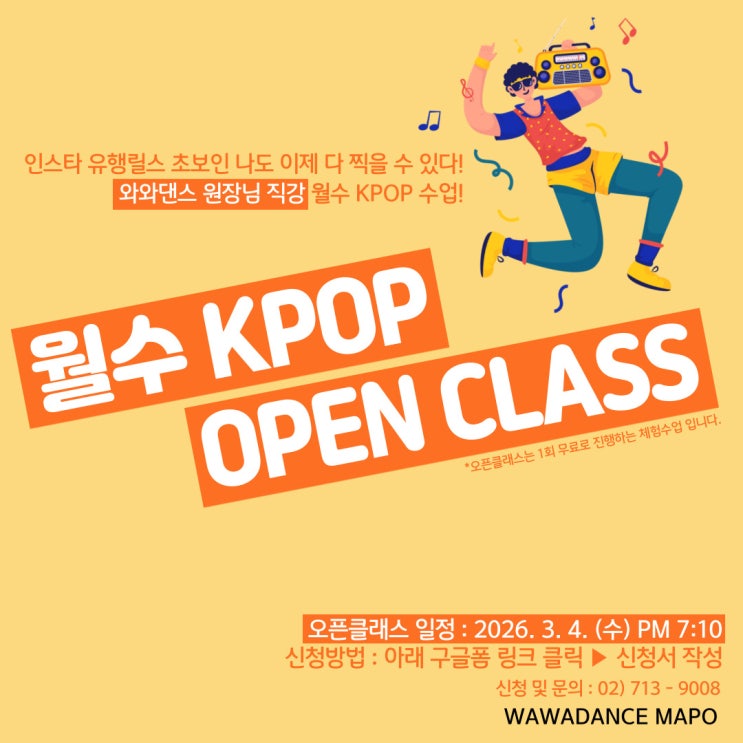 [마포댄스학원] 마포방송댄스 찾고 계신가요? 성인 KPOP 무료 체험 오픈클래스 안내