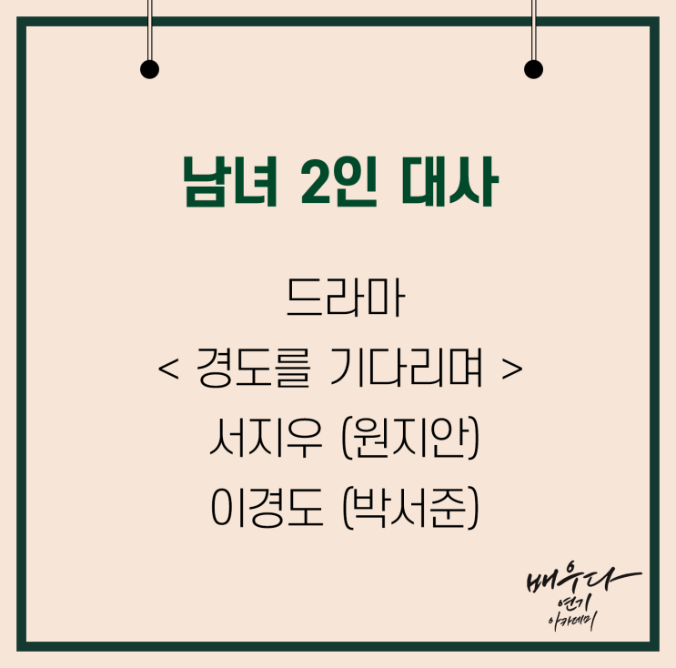 드라마 < 경도를 기다리며 > 3회 서지우 (원지안), 이경도 (박서준) 남녀 2인 대사 서지우 : 착한 게 아니야. 모자란 거야. 모자란 놈이 미치면 답도 없어. 이경도 : 술 마셨냐? 서지우 : 대가리 치워. 이경도 : 왜 이래? 뭐, 뭔데? 서지우 : 야, 이경도, 술, 술, 술 왜 그렇게 지랄하나 했어. 뭐, 알코올 중독? 무슨 영화에서나 나오는 거 그거를, 그거를 니가 왜? 이경도 : 아, 별것도 아닌 거 갖고 호들갑이야. 서지우 : 별게 아니야? 병원에 입원까지 해서 회사도 잘릴 뻔한 게, 그게 별게 아니야? 이경도 : 어쩌라고, 그럼! 그냥 그렇게 됐어. 마시다 보니까 매일 마셨어. 순식간이더라. 그래서 너도 그 꼴 날까 봐 마시지 말라고 하....... <img src="https://blogthumb.pstatic.net/MjAyNjAyMjNfMjI1/MDAxNzcxODEyMTM4NTU1.Oz1Xgt5664_JdL4W1zg8RxCp04MBV0eDiUWYfyFz6aYg.jDV3BAsIKdE5GTSx3eQq20EOzoNm8sq1p13DumeYMpsg.PNG/%B0%E61.png?type=s3" />