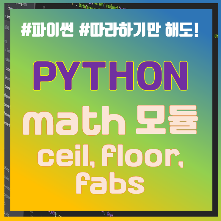 #파이썬 #따라하기만해도! 안녕하세요? 코딩클래스입니다. 파이썬을 기초부터 하나씩 차근차근 배워보는 시간입니다 지난 시간 어떤 문자열로 시작하는지, 끝나는지 확인하는 함수인 statswith, endswith 함수에 대해 알아보았습니다. 알아두면 유용하니 다시 한번 확인하시기 바랍니다. https://blog.naver.com/codingclass/224157516223 오늘은 math 모듈에 알아보려고 합니다. math 모듈은 파이썬을 공부하시는 분이라면 반드시 알아두어야 할 부분입니다. 어떤 숫자 데이터를 다루게 되었을 때 사칙 연산, 올림, 반올림, 팩토리얼, 절대값 등을 직접 구하는 것보다 이런 것을 처리하는 함수들이 모여있는 math 모듈을 사용하면 매우 편리합니....... <img src="https://blogthumb.pstatic.net/MjAyNjAyMDVfMjYg/MDAxNzcwMjg0ODk1NDE2.6DvzV1uwHiDzZHks2N282szHC_AK576IAbxnQreAQxAg.IDpt6ZBvV5FGgEnryE0bZrWAaAMQKvrrqyvcdGpaeugg.PNG/34_math.PNG?type=s3" />