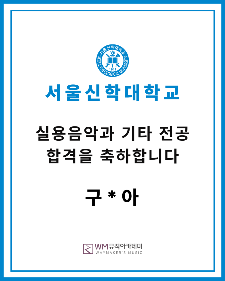 WM 뮤직아카데미 합격생 [2026학년도 서울신학대학교 실용음악과 기타 전공 정시 최종 합격- 구*아] | 마곡 기타 학원 마곡 실용음악학원 강서구 실용음악학원