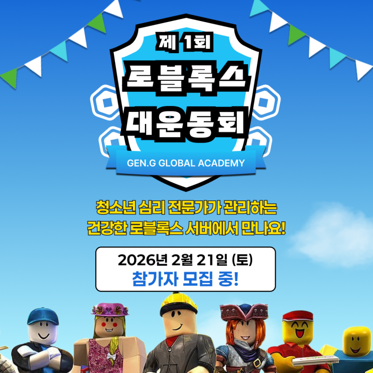 안녕하세요. 젠지글로벌아카데미입니다. 갑자기 왜 로블록스 이야기가 나오냐구요? 저희 GGA가 새롭게 ‘GGA PLAY 로블록스 멤버십’을 오픈하게 되었습니다. 기존 부정적인 인식이 강했던 서버들에서 벗어나 GGA 멤버십 전용 프라이빗 서버는 청소년 심리 전문가가 관리하는 건강한 로블록스 서버입니다. 그 기념으로 제 1회 로블록스 대운동회를 개최합니다! 누구나 참가 가능한 이번 대운동회! 건전하고! 재밌게! 친구들과 함께! 놀아볼 아이들을 기다립니다 대운동회 개요 참가 대상 : 로블록스를 좋아하는 누구나 (무료) 대회 장소 : 온라인 / 멤버십 전용 GGA 디스코드 및 로블록스 프라이빗 서버에서 진행 일....... <img src="https://blogthumb.pstatic.net/MjAyNjAyMTBfMjU3/MDAxNzcwNzE3NjczNjEx.54bZ5U47BDyAL3DHBUiUW8mWmPVusiC0dJzuog-jAcgg.r_CzdabFJRUwtJIgAJxeCiG4CSY_02s7PD7BMiIEqDAg.PNG/%B7%CE%BA%ED%B7%CF%BD%BA_%B8%E2%B9%F6%BD%CA_%B3%D7%C0%CC%B9%F6_%BA%ED%B7%CE%B1%D7.png?type=s3" />