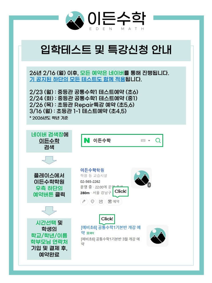 [초.중등] ★ 테스트 예약 방법 변경 안내 ★