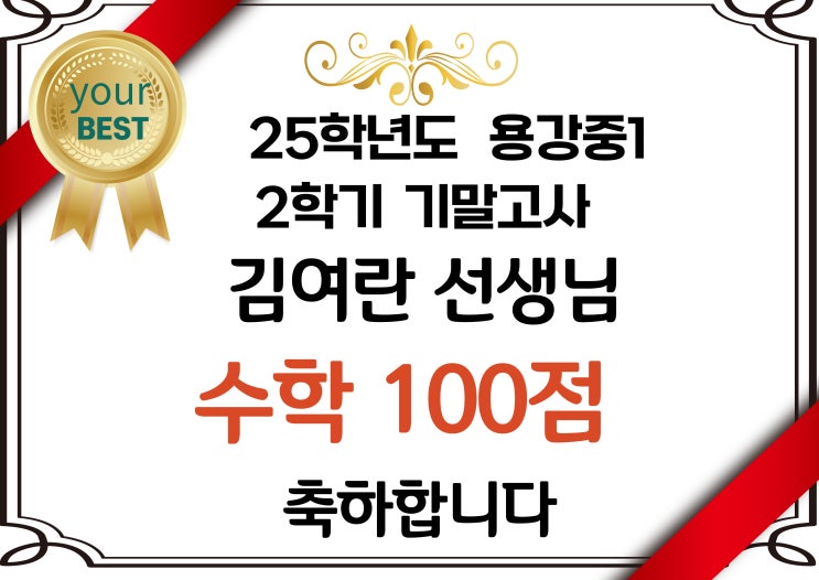 [용산수학]25학년도 2학기기말고사 성적우수학생!! (상위권수학학원이촌)