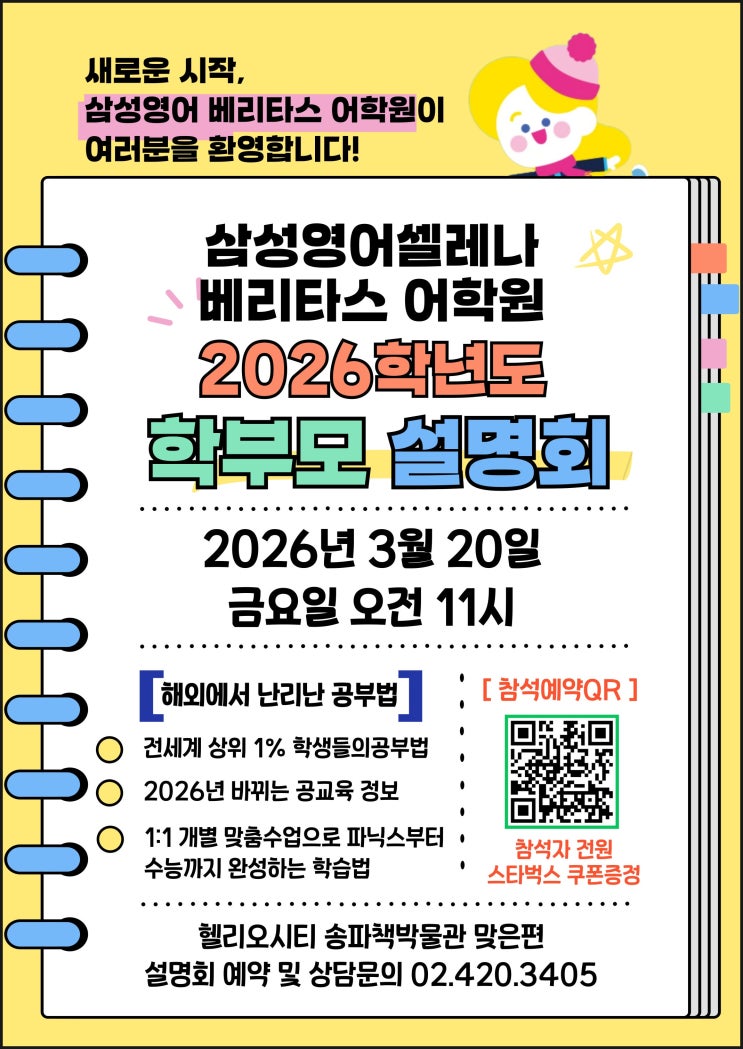 2026 삼성영어 베리타스 어학원의 [학부모 설명회] "학교도 학원도 처음인 우리아이 급변하는 교육 환경 속에서 우리 아이의 영어 학습 방향, 정말 제대로 가고 있을까요?"