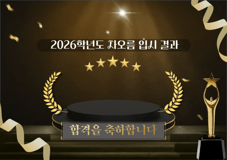안녕하세요 차오름 학원입니다. 수능까지의 긴 여정을 마친 학생들에게 다시 한 번 응원과 격려를 보냅니다. 오늘은 경희대 합격 소식을 알려 드립니다. 경희대 지리학과에 합격한 소하고 3학년 김00 학생 2023년 고등학교 1학년 때부터 2025년 정시 준비까지 차오름과 함께 했던 김OO 학생입니다. 수업에 열심히 참여하는 성실한 태도를 통해 꾸준히 좋은 성적을 유지하며 선생님께 많은 신임을 받았습니다. 경희대학교 합격을 다시 한 번 축하합니다. 탄탄한 커리큘럼을 통하여 진행되는 차오름 학원만의 독보적인 수업! 실력이 차오르는 광명시 1등국어학원 차오름이 궁금하시다면 아래 문의번호로 언제든 연락 부탁드립니다 #광....... <img src="https://blogthumb.pstatic.net/MjAyNTEyMThfMjc0/MDAxNzY2MDQ4MDEyNjMz.CGp4gcMoCzG81ig0DdqWfS6l54SBSgTYPXIOz2uAr6gg.MNhYKyxYA80LlJCMaBEkCjAuDLPDeMVvFFGt1KtCNa8g.GIF/26%C7%D0%B3%E2%B5%B5_%C0%D4%BD%C3_%B0%E1%B0%FA_-_%B0%E6%C8%F1%B4%EB.gif?type=s3" />