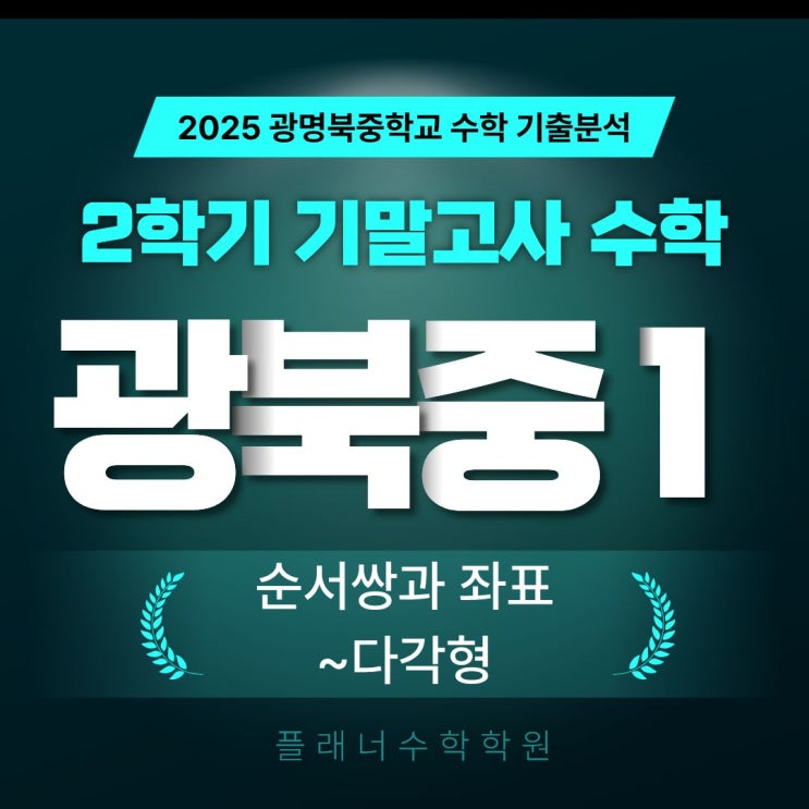 2025년 광명북중학교 1학년 2학기 기말고사 수학 기출문제 분석 순서쌍과 좌표 ~ 다각형 중학교에 입학한 뒤 처음 치르는 기말고사는 학생들에게 체감 난도가 높을 수밖에 없습니다. 이번 포스팅에서는 2025학년도 광명북중학교 1학년 2학기 기말고사 수학 시험을 중심으로, 1) 시험 난이도 2) 단원별 출제 경향 3) 서술형 분석 4) 다음 시험 대비 전략 까지 꼼꼼하게 정리해보겠습니다. 시험 전체 개요 한눈에 보기 시험 범위 순서쌍과 좌표 ~ 다각형 전체 난이도 중 문항 구성 객관식 23문항 서술·논술형 2문항 이번 시험은 전반적으로 기본 개념 위주로 출제되었지만, 1) 첫 시험이라는 점 2) 문항 수가 적지 않았다는 점 때문에 시간 관리가....... <img src="https://blogthumb.pstatic.net/MjAyNTEyMTlfMTU5/MDAxNzY2MTMwNDI4NzA3.uo6bnmLAcolS7ODiWI6gxRm9LrzgVdr_V6WBVGxugqgg.AgxTrJr1WikZG6vjEgYZJ7d8vajMbvoit2c9ECeBvEYg.JPEG/%B1%A4%BA%CF%C1%DF1.jpg?type=s3" />