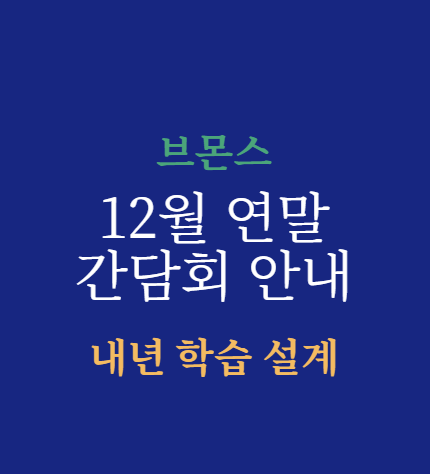 브몬스는 연말을 아이의 다음 학습 단계를 설계하기 위한 공식 정비 기간으로 운영합니다. 이에 따라 아래와 같이 연말 학부모 간담회를 진행합니다. [간담회 일정] 일정: 12월 29일(월) ~ 12월 30일(화) 형식: 1:1 개별 간담회 (15분~20분) 대상: 고학년(예비 초4 이상) / KMA 특강 수강자 ※ 해당 기간 정규수업은 간담회 일정으로 대체됩니다. [간담회에서 다루는 내용] 이번 간담회에서는 다음 내용을 중심으로 정리합니다. 아이의 현재 학습 위치와 사고 흐름 유지해야 할 학습과 조정이 필요한 학습 구분 다음 학기 학습 방향 및 로드맵 안내 가 이루어집니다. [신청 안내] 아래 신청서를 통해 희망 시간대를 직접 선택해 주세요. ※ 간담....... <img src="https://blogthumb.pstatic.net/MjAyNTEyMTRfMjcw/MDAxNzY1NzIwNDMyMzM4.9bYg7fWm0B3rm4rUnKQ-musf7NBvpVoL5GH5-fwujuAg.XF7ixDN_044MbD0dKyJuL4pSmkusLvj0VJhzkx63S6wg.PNG/image.png?type=s3" />