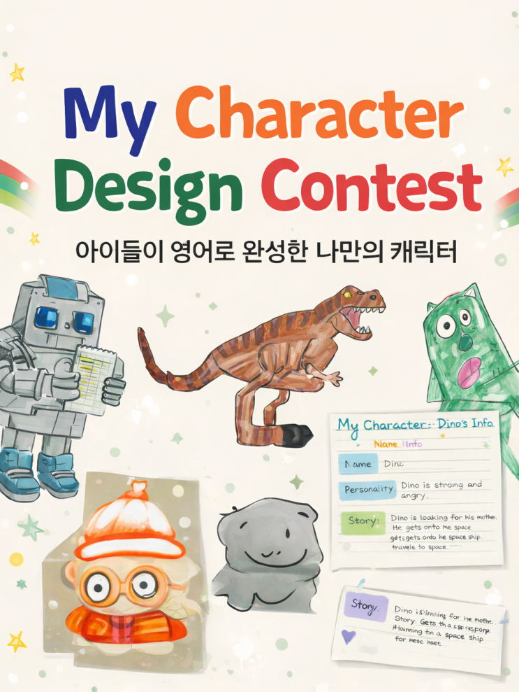 안녕하세요. 감일동 영어학원 파머스영어 감일캠퍼스입니다. 지난 12월 파머스영어 크리스마스 파티에서 진행되었던 아이들의 특별한 영어 프로젝트 My Character Design Contest를 소개해 드리려고 합니다. 아이들 손에서 탄생한 ‘세상에 하나뿐인 캐릭터’ My Character Design Contest는 아이들이 직접 캐릭터를 창작하고 영어로 설명하며 발표하는 프로젝트형 활동입니다. 아이들은 단순히 그림을 그리는 데서 끝나는 것이 아니라 캐릭터 이름 만들기 성격과 특징 정리하기 스토리 설정하기 영어 문장으로 발표하기 까지 전 과정을 스스로 완성했습니다. 그 결과, 창의적이고 재미있고 귀엽고 아이들 성향이 그대로 드러나는 정말....... <img src="https://blogthumb.pstatic.net/MjAyNjAxMDhfMjg3/MDAxNzY3ODY4MDM1NDAx.qdElf6LvTegA998CsP72JReUphoLcKjJe2zvQt6ll1wg.2H6gsHR5ZtRLC9oEAs90johajCOTaLR-hTjdkK3kPMsg.PNG/ChatGPT_Image_2026%B3%E2_1%BF%F9_8%C0%CF_%BF%C0%C8%C4_07_26_03.png?type=s3" />