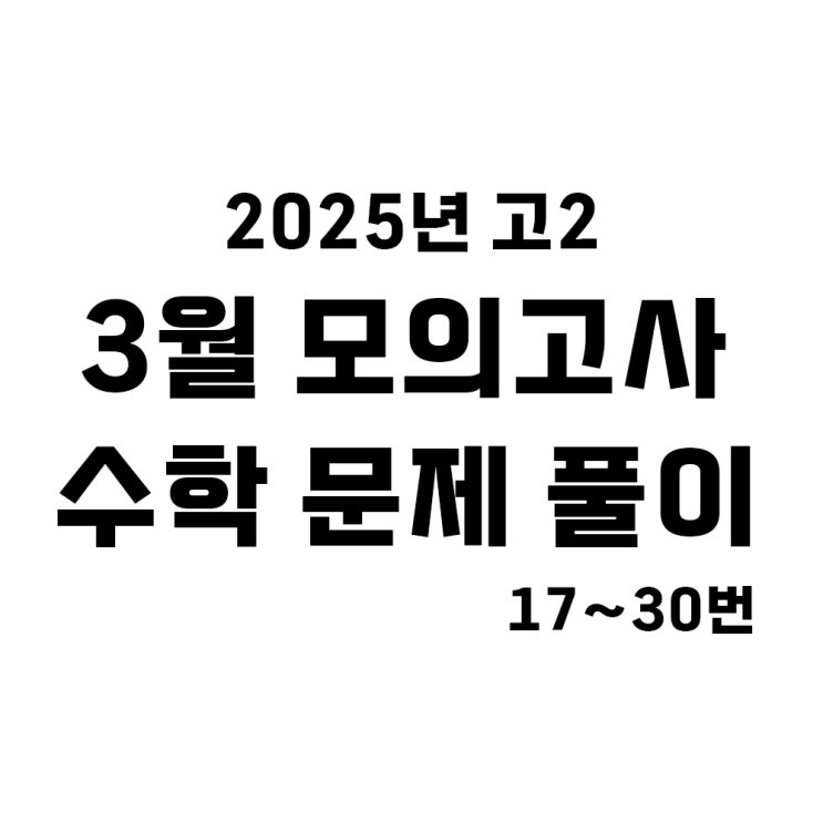 안녕하세요 김포 일공공수학학원입니다! 오늘은 지난 포스팅에 이어서 3월 모의고사 17-30번 문제를 풀어보도록 하겠습니다 ໒(⊙ᴗ⊙)७✎▤ 17번, 18번 19번, 20번 19번 문제 21번, 22번, 23번 24번, 25번 26번 문제 27번, 28번 29번, 30번 29번 문제 지금까지 17-30번 문제를 풀어보았는데 이해가 잘 되셨나요~? 잘 모르겠거나 궁금한 부분이 있다면 댓글 남겨주세요! <img src="https://blogthumb.pstatic.net/MjAyNjAyMjFfMTkz/MDAxNzcxNjUzOTE2ODk0.0D-hdW_SxhkhGWmJN7DoX8Uci24378vss7SKPAWLRlwg.pwRjt0SaterezOjNuVv9aO3OVjvqL-f94P7UB1wPkjog.JPEG/25.3_%B0%ED2_17-30_%B3%D7%C0%CC%B9%F6%BF%EB.jpg?type=s3" />
