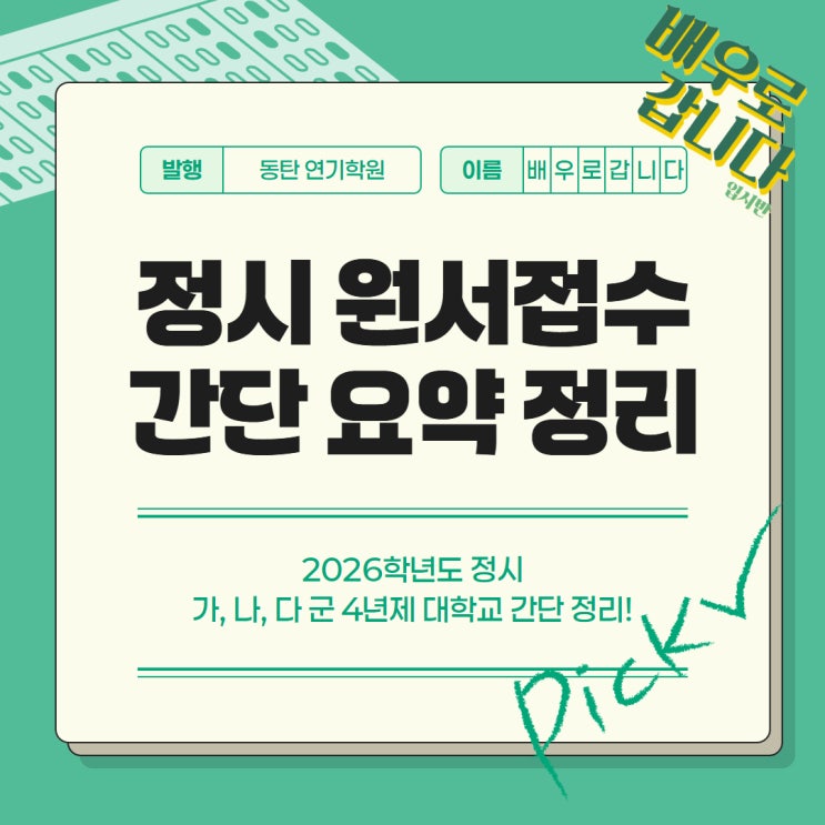 연극영화학과 정시모집 간단 요약정리! 동탄 연기학원 배우로갑니다