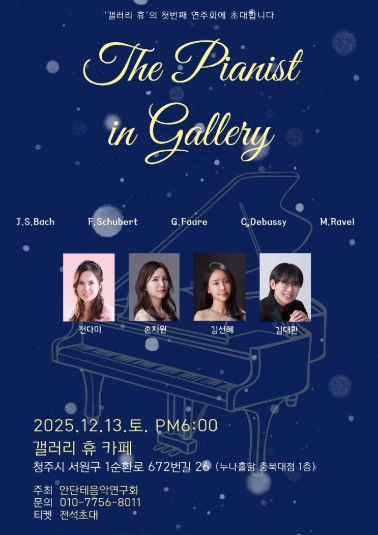 '갤러리 휴'- 첫번째 음악회- 제자들과 함께 첫 연주회를 합니다. 2025년 12월 13일 토요일 저녁 6시 전석 초대 입니다.