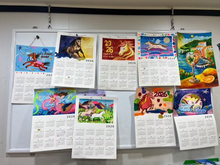 안녕하세요. 성북구 동소문동 정덕초등학교 옆에 위치한 유아/초등 미술학원 예랑미술학원 입니다! 병오년 달력 만들기 병오년, 붉은 말의 해를 맞이하여 한동안 초등 고학년 친구들과 '말'을 주제로 한 달력 만들기 수업을 진행하였어요~! 저마다 한 해를 상징하는 말의 모습을 상상하며 자신이 바라는 새해의 모습과 다짐을 그림 속에 담아보았답니다. 그럼 함께 볼까요?! 같은 주제였지만 말의 표정, 움직임, 배경 이야기는 모두 달랐고, 아이들의 성향과 상상력이 자연스럽게 드러난 개성있는 달력 작품들이 완성되었어요! '말'이라는 상징에서 속도와 에너지, 도전과 성장, 자신이 꿈꾸는 한 해의 모습을 떠올리며 각자....... <img src="https://blogthumb.pstatic.net/MjAyNjAyMTlfMTky/MDAxNzcxNTA3MDE2NzQw.9j7_Qn3wJ_jk9uzVj8tIYeIsj9_o7DD8pbAabTBIrPQg.lIJ4rQmORO3gy0pl9vrZDKTSMRNj7L4ICzFqOl-4hZAg.JPEG/KakaoTalk_20260212_095438070_10.jpg?type=s3" />