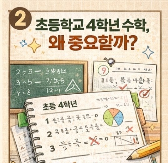 초등 4학년 수학, 지금이 골든타임 중학교 성적은 여기서 결정됩니다! 안녕하세요. 일대일 개별맞춤 전문 프리미엄 수학교육을 지향하는 마들역수학학원이화영수학입니다. 오늘은 새학기를 앞두고 초등 4학년 수학이 왜 중요한지에 대해서 이야기 하려고 합니다. <마들역수학학원, 상계동수학학원> 초등 4학년 수학은 단순한 한 학년 과정이 아닙니다. 많은 학부모님들이 “아직 초등학생이니까 괜찮겠지”라고 생각하시지만, 실제로는 중학교 수학 성적의 기초가 완성되는 중요한 시기입니다. 특히 초등 4학년은 수학 난이도가 눈에 띄게 높아지며, 개념 이해력이 본격적으로 요구되는 단계입니다. <마들역수학학원, 상계동수학학원>....... <img src="https://blogthumb.pstatic.net/MjAyNjAyMjRfMTEg/MDAxNzcxOTExOTk2MjU4.lBdDmm_gQUs6UQVFnYouzKt0O6RtPabVaUCvhFBiKyIg.qw1sKqcXistlGp7u6saGt67M57rTWg6tKuD61U67X3Ig.JPEG/1771911995929.jpg?type=s3" />