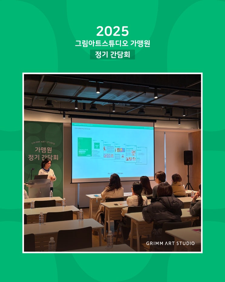 아동미술 프랜차이즈 그림아트스튜디오에서 교육원을 운영하고 계신 가맹원 원장님들을 모시고 정기 간담회를 진행했습니다. 그림아트스튜디오 가맹원 대상 정기 간담회는 연 1회 열리는 자리로, 그림아트스튜디오를 운영하고 계시는 원장님들께서 참석해 주셨습니다. 이번 간담회에서는 가맹원 원장님들과 본사 임직원들이 한자리에 모여, 운영과 교육에 대한 다양한 이야기를 나누며 의미 있는 소통의 시간을 가졌습니다. 이번 그림아트스튜디오 간담회는 가맹원 원장님들께서 각 교육원을 어떻게 운영하고 계신지 함께 점검하고, 미술학원(교습소) 창업 이후에도 안정적인 운영을 이어갈 수 있도록 그림아트스튜디오만의 운영 노하우와 가맹원....... <img src="https://blogthumb.pstatic.net/MjAyNTEyMTVfMjM0/MDAxNzY1Nzc1NDg3NzI1.m3kJXcVc7kscBZx3ZwBM2qcNJiOcxgFZVGgHXcNW-PEg.hBwvk7gC_O6jUKOEvblhwyTCGh-nl7ZYNgD2DctES2wg.JPEG/%B9%AB%C1%A6-1-03.JPG?type=s3" />