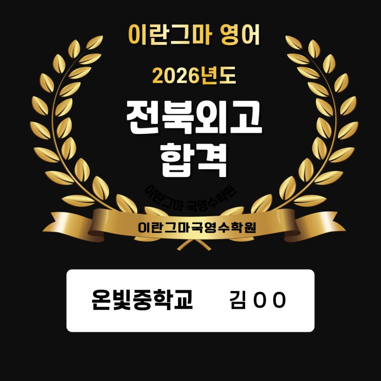 #전주혁신도시영어본점 #이란그마영어 #내신관리 #입시상담 #바르고빠른영어학습티칭 이란그마영어 재원생 전북외고 합격을 축하해!!!! 너의 새로운 시작을 응원할게 :) <img src="https://blogthumb.pstatic.net/MjAyNjAxMDVfMTEw/MDAxNzY3NjEyNDkwNTY3.7NfaPwLKS9V2DiSp0iK1N-ldDH40eYzUTkRhaeR6SrIg.IG2Vr4Uy18Y1MKZ7lAC_ASrbu6zH6Ti3mY_SX-2Ol6cg.JPEG/%C1%A6%B8%F1%C0%BB-%C0%D4%B7%C2%C7%D8%C1%D6%BC%BC%BF%E4_-001_%2813%29.jpg?type=s3" />