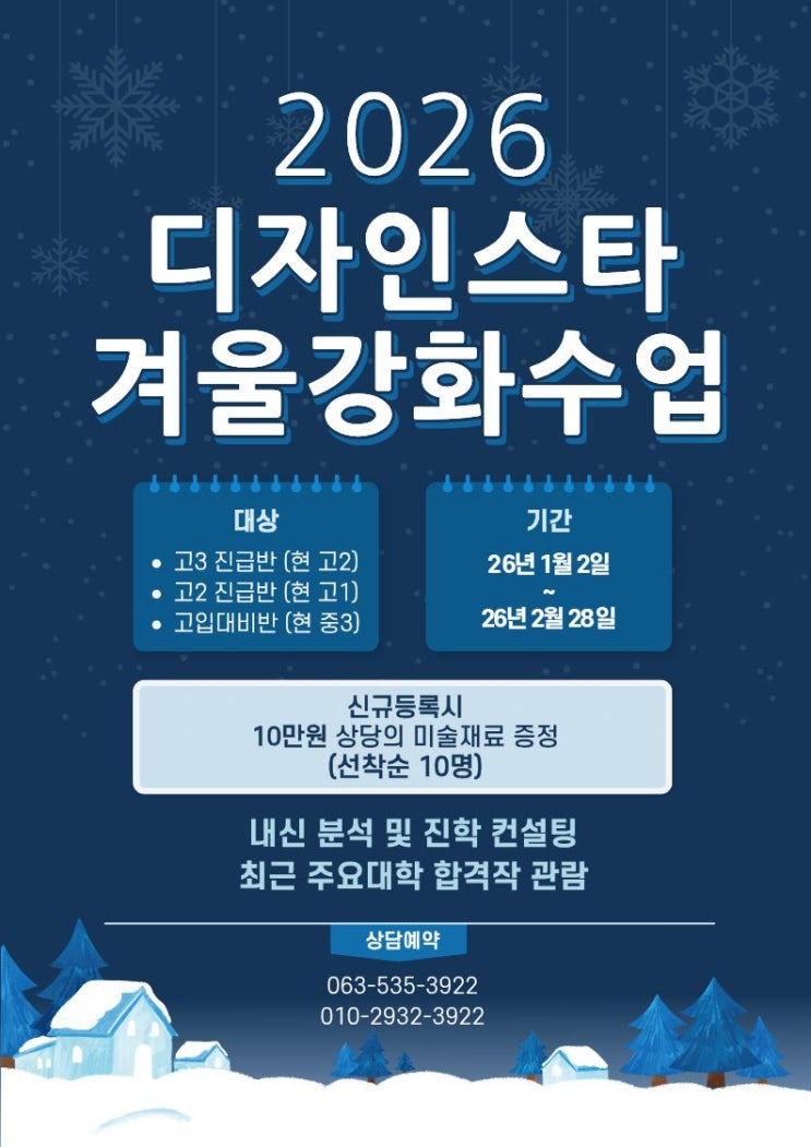 정읍미술학원 디자인스타미술학원 2026년 겨울강화수업 이벤트