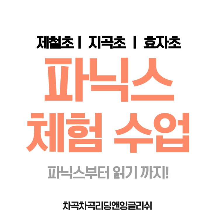 아이의 입에서 처음으로 영어 소리가 자연스럽게 흘러나오고, 그 모습을 보며 어머님의 마음에도 '아, 여기구나’라는 확신이 드는 순간!' 차곡차곡 파닉스 체험수업은 그런 변화를 직접 경험하는 시간입니다. ✅️ 체험수업은 실제 정규 파닉스 커리큘럼 그대로 진행됩니다. ✅️ 약 1시간 동안 아이들은 파닉스 영어 첫 단계를 체계적으로, 차곡차곡 경험합니다. ✅️ 그 시간 동안 어머님께서는 차곡차곡의 수업 방식은 물론, 공간·분위기·학습 시스템까지 천천히 살펴보실 수 있어요. 그동안 마음속에만 있던 고민들, "우리 아이는 지금 어떻게 시작해야 할까?”라는 질문을 부담 없이 직접 확인해보세요. 궁금한 점은 언제든....... <img src="https://blogthumb.pstatic.net/MjAyNTEyMTdfMjEz/MDAxNzY1OTc0NzU0Njc5.Qnpg2d9_ZfUR0Pe34_-5BgL1LM0Za8uRRlWLIZS0p7Yg.dlDVJylUN6T91sgU99FD5d9TMYwAWoyF3BW6q2Cvau4g.JPEG/1000063734.jpg?type=s3" />