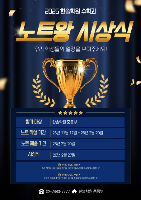 [한솔학원 중등부 수학과] 겨울방학 ‘노트왕’ 시상식 이야기 지금부터 시작합니다~