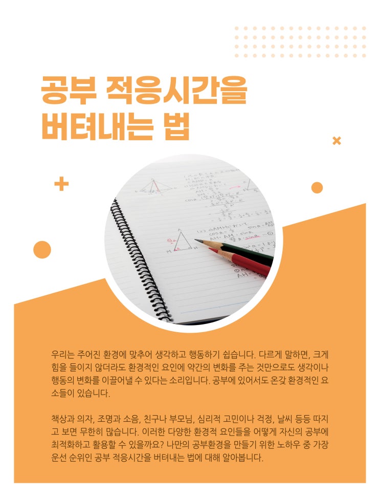 공부 적응시간을 버텨내는 법 집중하지 못하는 아이, 문제가 아니라 과정일 수 있습니다 “책상에는 앉아 있는데, 공부가 잘 안 되는 것 같아요.” “집중력이 너무 부족한 건 아닐까요?” 학부모님들께서 가장 많이 하시는 걱정입니다. 하지만 집중이 바로 되지 않는다고 해서 아이에게 문제가 있는 것은 아닙니다. 사람은 누구나 새로운 상태로 들어갈 때 생각과 마음이 정리되는 **‘적응시간’**이 필요합니다. 공부도 예외가 아닙니다. ❌ 집중하지 못하는 모습만 보고 판단하지 마세요 아이들은 “공부해야 한다”는 생각만으로도 이미 긴장하고 있습니다. 그 상태에서 바로 집중하길 기대하면 아이 스스로를 더 몰아붙이게 되고, 공....... <img src="https://blogthumb.pstatic.net/MjAyNTEyMTlfNzcg/MDAxNzY2MTI5ODA5MzE0.YRMMsqch44OClr1VlGaAV0XOcd3E6FhBgezco9wlTigg.0Qcs_5c5iGnc80GIQRnSgZmxYZEAvj2tZNhgoLBjb5Mg.JPEG/251222_%BF%F9%BF%E4_%C4%AB%B5%E5%B4%BA%BD%BA.jpg?type=s3" />