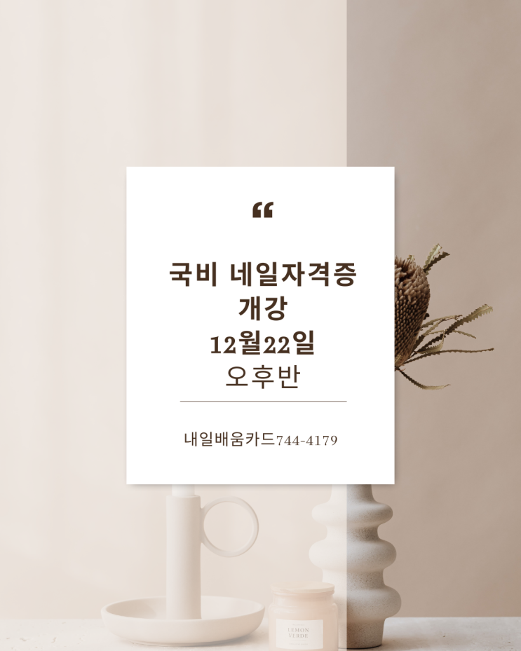 12월22일 월요일! 국비지원 네일자격증반이 개강합니다:) 내일배움카드를 소지하고 계신다면 바로 신청가능하시구요! 고용24사이트에서 이손네일미용학원을 검색후 자격증반 수강신청을 해주시면 완료!>< 선착순 모집이니 늦지않게 신청하세요!! <제주내일배움카드> <img src="https://blogthumb.pstatic.net/MjAyNTEyMTBfNiAg/MDAxNzY1MzQ3MDQ3Nzky.Lg8hc3uSZp7b7Pvaut6YAdY853O3CRlBoY4rIMlkSPAg.Q4g1jdRNkD1otQ0aoSZl5eWm5Mc5MuOyjVIrGdSsdW4g.PNG/KakaoTalk_20251210_150822022.png?type=s3" />