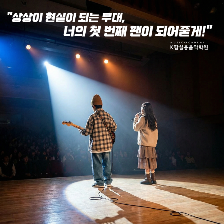 안녕하세요! 아이들의 꿈에 날개를 달아주는 제주 케이팝실용음악학원입니다. 혹시 우리 아이가 젓가락으로 식탁을 두드리며 드럼 치는 흉내를 내거나, 빗자루를 기타처럼 메고 거울 앞에서 노래를 부르는 모습을 본 적 있으신가요? 아이들에게 음악은 단순한 취미를 넘어, 자신을 표현하는 가장 큰 '상상력의 무대'입니다. 1. 상상은 성장의 가장 큰 동력입니다 비록 지금은 작은 연습실에서 악기를 배우고 있지만, 아이들의 마음속에는 이미 수만 명의 관중과 화려한 조명이 비치는 거대한 무대가 펼쳐져 있습니다. 이러한 '무대 위의 내 모습'을 상상하는 힘은 지루할 수 있는 기초 연습을 견디게 하고, 실력을 쑥쑥 키우....... <img src="https://blogthumb.pstatic.net/MjAyNjAyMjVfMTcg/MDAxNzcxOTgwMzM4NTE0.gTuNiwCnoiPYcUqfPqAXxjdWWDy6VECVQP2GrLOgl7kg.Wba0xGIWd-6Pef2lpRs67CNGZLIybUaQp_ag9vuXVTQg.PNG/%BB%F3%BB%F3%C0%CC_%C7%F6%BD%C7%B7%CE.png?type=s3" />