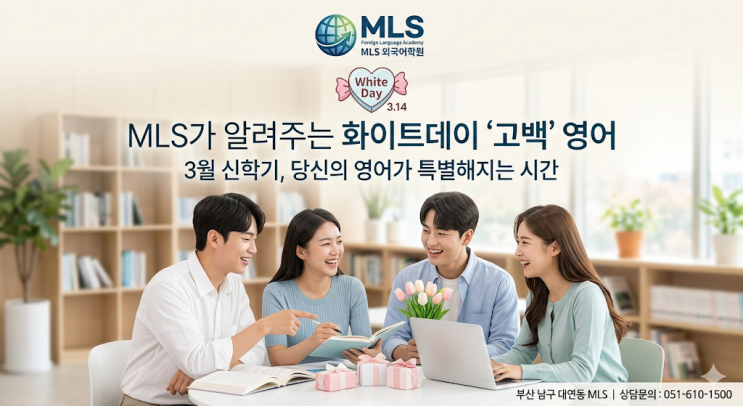 "Good morning" 안녕하세요 부산 남구 대연동 MLS 외국어학원입니다 어느덧 3월의 중순, 거리마다 달콤한 사탕 향기가 가득한 화이트데이가 다가왔습니다! 신학기의 설렘과 봄바람이 교차하는 이 시기, 새로운 인연을 기다리거나 소중한 사람에게 마음을 전하고 싶은 분들이 많으실 텐데요. 세기의 아이콘 오드리 헵번은 이런 말을 남겼습니다. "The best thing to hold onto in life is each other." 삶에서 붙잡아야 할 가장 소중한 것은 서로이다 오늘은 여러분의 소중한 인연을 더욱 단단하게 만들어줄, 화이트데이 맞이 실전 영어 표현과 최신 연애 트렌드를 정리해 드립니다. '작심삼일' 공부는 끝! 재....... <img src="https://blogthumb.pstatic.net/MjAyNjAzMTJfOTYg/MDAxNzczMzEzNzU2Mzgy.aNmBwfPhoLCBAoiWSGMctQ4Do-6fer8RiTBnWepWaScg.6dcR6qSUjh_x-c7XbavL1PXIvuwC2w6PJgZwXk7wwzEg.PNG/image.png?type=s3" />