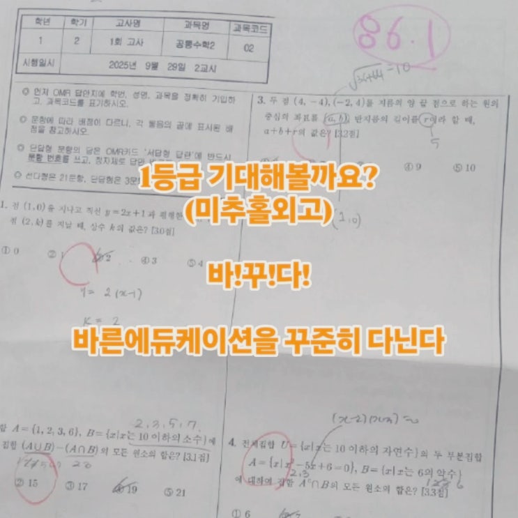 미추홀외고 1학년 1학기 수학 중간고사, 완벽 대비를 위한 가이드 - 바른에듀케이션 학원