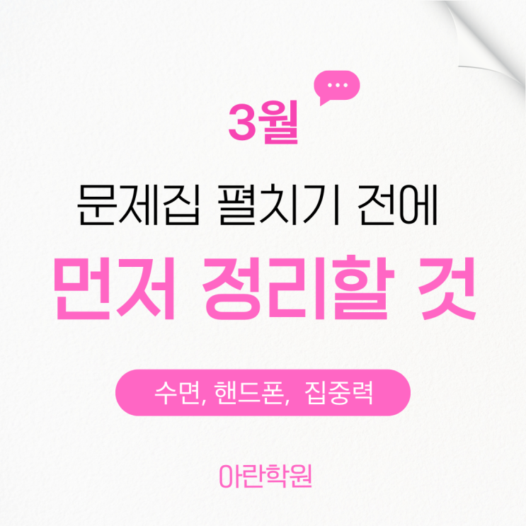 안녕하세요. 아이의 공부 습관을 실력으로 연결하는 학습 설계자, 아란학원 원장입니다. 2월 마지막 주말 잘 보내고 계시죠? 내일과 월요일을 지나면 화요일, 개학입니다. 방학의 느슨함이 아직 남아 있는 집 안 공기와, 곧 시작될 학교 생활 사이에서 아이도, 엄마도 어딘가 조용히 긴장하고 있을 테지요. 3월은 경쟁하는 달 3월은 겉으로는 평온해 보이지만 속에서는 분명히 갈라지는 달입니다. 문제집의 두께가 아니라 하루의 구조에서 차이가 만들어진다고 할까요? 잘 준비된 아이는 눈에 띄지 않게 안정되고 준비되지 않은 아이는 이유 없이 지칩니다. 3월은 훨씬 조용하고, 눈에 잘 보이지 않는 영역에서 경쟁이 시작되는 달입니다. 바로 생....... <img src="https://blogthumb.pstatic.net/MjAyNjAyMjhfMjk5/MDAxNzcyMjUwODAwMjAw.UCS333wRDZxESM4o8paWbEHRu9R5_3WNdA_T-C5QE20g.xsz3E5VHSH8C1sDLUEDZV0WbxW61Qntg1aiVqG5PstQg.PNG/%BA%ED%B7%CE%B1%D7_%BD%E6%B3%D7%C0%CF.png?type=s3" />