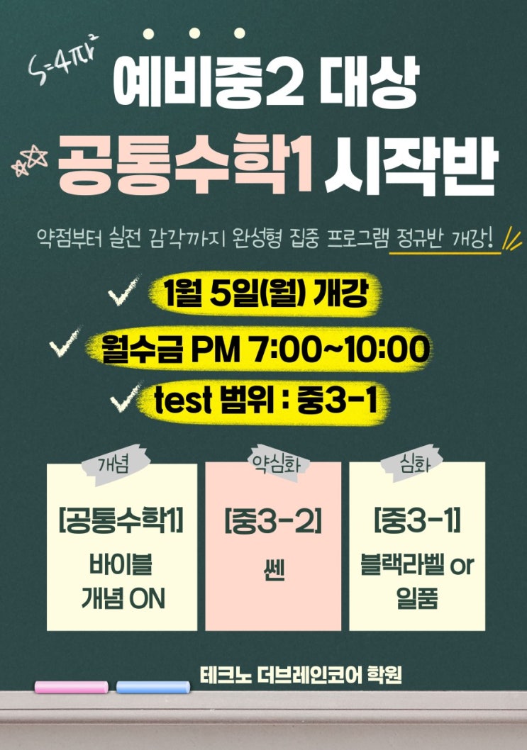 [테크노 더브레인코어]예비중2 공통수학I 정규반 개강 안내