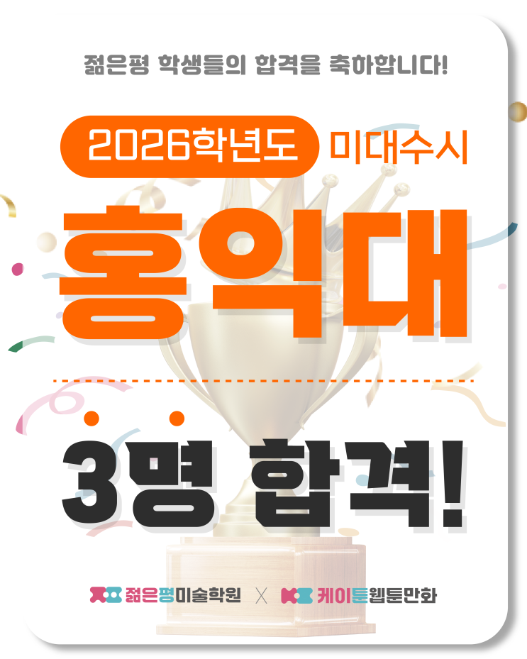 젊은평 학생들의 합격을 축하합니다! 중. 고등 미술 전문 젊은평미술학원 기초부터 탄탄하게, 실력으로 증명하는 미술교육! 공모전 / 실기대회 / 내신까지 완벽 대비 실기 중심의 체계적인 수업 운영 관찰력 / 표현력 / 완성도 향상 집중 지도 입시를 준비하는 눈, 기본기를 다지는 손 개별 맞춤 피드백으로 눈에 보이는 실력 향상 " 즐겁게 그리고, 바르게 성장하는 미술교육!" 젊은평 메인 인스타그램 https://www.instagram.com/artyoung_gwanjeo.main?utm_source=ig_web_button_share_sheet&igsh=ZDNlZDc0MzIxNw== 젊은평 고등 디자인반 인스타그램 https://www.instagram.com/artyou....... <img src="https://blogthumb.pstatic.net/MjAyNjAxMDJfMjQ5/MDAxNzY3MzQyMzEwOTI0.OG0JCF35x-RKgB6jUtejqh6sR_ZOLcgMFHE5dRvjVqQg.6AwvVWYsmgMedtaSgMOfRf6Qm5AOVI-osQx9J1RV94Ug.PNG/%BC%F6%BD%C3%C7%D5%B0%DD_%BC%BC%C1%BE%C5%DB%C7%C3%B8%B4_%B4%EB%C1%F6_1-04.png?type=s3" />