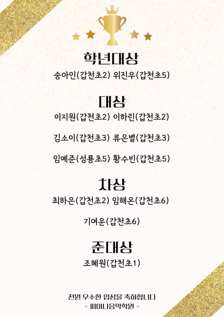 ✨대전 월평동 피어나음악학원 10기 콩쿨반 전원입상✨