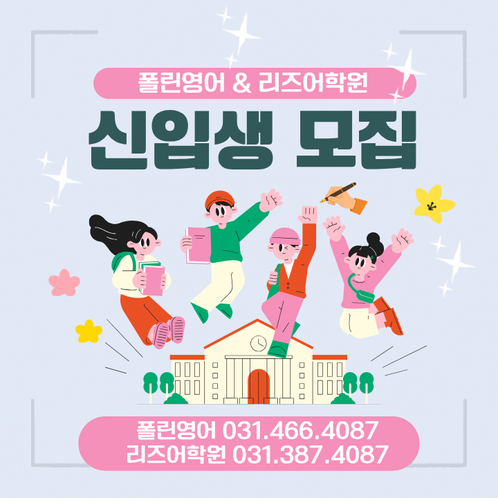 안녕하세요, 폴린입니다 :) 설날에도 많은 어머님들께서 전화 주셔서 신규 모집에 대해 문의해주셨습니다. 2026년도 폴린영어에서는 신규 클래스 딱 3클래스만 모집합니다. 현재 자리가 많지 않고, 해당 스케줄이 최대 가능한 수업 스케줄이기 때문입니다. 1. 화,목 2시~3시30분 클래스 (초1~2) 이 클래스는 이미 파닉스를 어느 정도 배운 친구들, 단모음과 장모음을 배운 친구들을 모집합니다. 영어로의 노출이 어느 정도 된 친구들을 위한 클래스이며, 3월에 시작하는 클래스는 이중자음, 이중모음 수업 후 정규 클래스로 이동하는 클래스입니다. *레벨테스트 필수입니다. 2. 화,목 2시~3시30분 클래스 (초1~2) 이 클래스는 3월부터 시작하는 알....... <img src="https://blogthumb.pstatic.net/MjAyNjAyMThfMzgg/MDAxNzcxNDIwMjQ2ODIy.tU7lbxQxlx_afYCII-XmyKsd5tAwBdc9cPFOC4bcFUEg.vdZqczqpsxt53KYnbBfIConvy3Naqs29_Tn0TH33nEAg.PNG/%C1%A6%B8%F1%C0%BB_%C0%D4%B7%C2%C7%D8%C1%D6%BC%BC%BF%E4._%283%29.png?type=s3" />