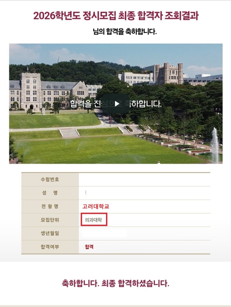 2026학년도 입시 실적 모두 공개합니다.
