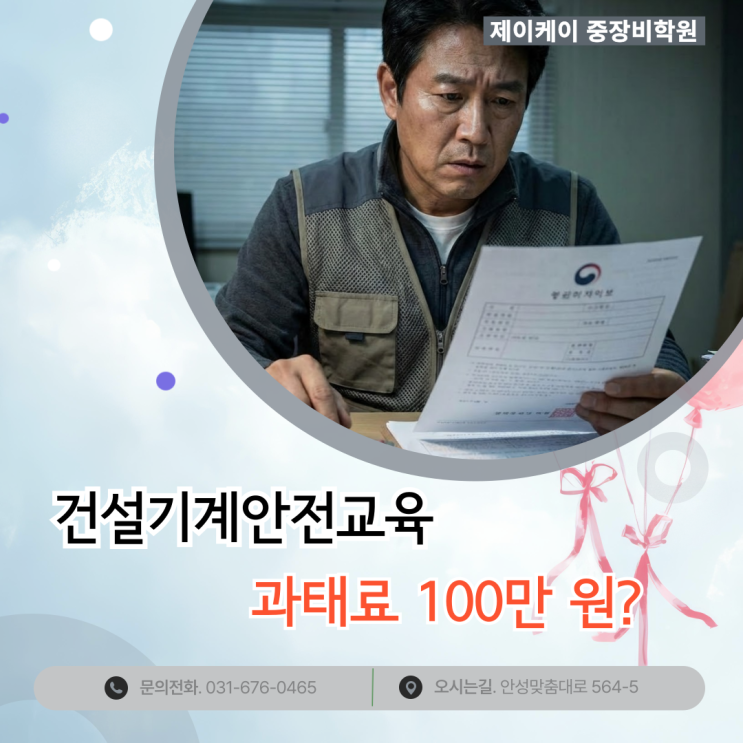 건설기계안전교육 안 받으면 과태료 100만 원? 현장에서 장비를 운용하시느라 바쁜 나날을 보내고 계시는 건설기계 조종사 여러분 반갑습니다. 어느덧 2026년 2월도 하순에 접어들며 경기 남부와 충청권의 물류 및 건설 현장은 그 어느 때보다 활기차게 돌아가고 있습니다. 하지만 이렇게 바쁜 시기일수록 자칫 놓치기 쉬운 것이 바로 법정 의무 교육입니다. 특히 건설기계안전교육은 단순한 선택 사항이 아니라 면허 유지를 위한 필수 조건인데 만약 교육 이수 시기를 놓친다면 생각보다 큰 금액의 과태료를 물어야 할 수도 있습니다. "바쁜데 나중에 받지 뭐"라고 생각하셨다면 오늘 글을 끝까지 읽어주세요. 자칫하면 100만 원이라....... <img src="https://blogthumb.pstatic.net/MjAyNjAyMjNfMjUw/MDAxNzcxODQyOTQ4OTU3.YeBRCFr6tfS-Zxvl6VWCFZxhLowK9wF4oiRdmLnRNVAg.WQFJiiN9jws7hyJ9Czmlh4lf7uWnKM7lgeio_qC7gPgg.PNG/%28%BD%E6%B3%D7%C0%CF%29%B0%C7%BC%B3%B1%E2%B0%E8%BE%C8%C0%FC%B1%B3%C0%B0_%BE%C8_%B9%DE%C0%B8%B8%E9_%B0%FA%C5%C2%B7%E1_100%B8%B8_%BF%F8.png?type=s3" />