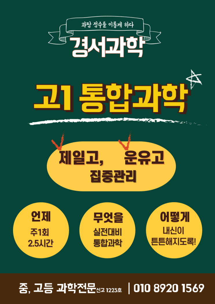 운양동 경서 과학 - 예비고1 통합과학 개강