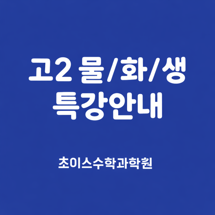 고2 물·화·생 방학특강 안내 2026년 1월 13일 ~ 3월 개학 전까지 화·목 13:00 ~ 17:00 (4시간) 주 2회 / 방학 기간 집중 특강 고2 물리·화학·생명과학을 겨울방학부터 개학 전까지 이어서 알차게 완성하는 집중 방학특강입니다. ✔ 핵심 개념 정리 및 구조화 ✔ 고난도·킬러 문항 대비 ✔ 실전 문제 풀이 중심 수업 1등급을 목표로 하는 학생들을 위한 반으로, 방학 기간 동안 학습 밀도를 높여 상위권 도약을 준비합니다. 관심 있는 학생은 개별 연락 주세요. 상담 후 자세히 안내드리겠습니다. <img src="https://blogthumb.pstatic.net/MjAyNjAxMTBfNTEg/MDAxNzY4MDI0MjcxNjU4.MCZ7PYoqQ8l1CEa6wVvFM3oT7i2_pjNXvo9-PaRO8Eog.0YyLtj_7a-zwyZRR79RUzlwSHa3oyDhgFXcyFs5mX7Mg.PNG/%B0%ED2_%B9%B0%C8%AD%BB%FD.png?type=s3" />