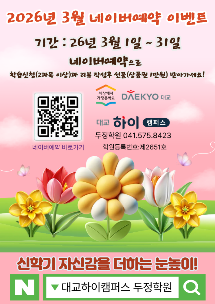 2026년 3월 대교Hi-CAMPUS 두정학원 '네이버 예약 이벤트' 안내