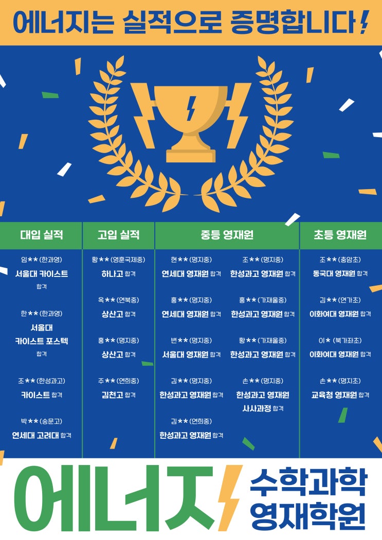 2026학년도 에너지 실적입니다. 합격생들 모두 축하드리며, 항상 최선을 다하는 에너지가 되겠습니다. 갑사합니다! <img src="https://blogthumb.pstatic.net/MjAyNjAzMDNfMjU3/MDAxNzcyNTI4MDA4ODY0.B2hMCz_lh__kumg1EgY3CR1QTddpmhiMQjftHVHkWLsg.U6PFzKOhV5jnaI0ZuZ1k0qzFPCr6J_lcYGKhhf5OvbIg.JPEG/2026_%BD%C7%C0%FB%28%BC%F6%C1%A4%29.jpg?type=s3" />