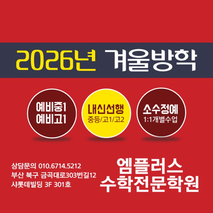 [부산 화명동 수학학원] 2026년 겨울방학 및 1학기 수업안내