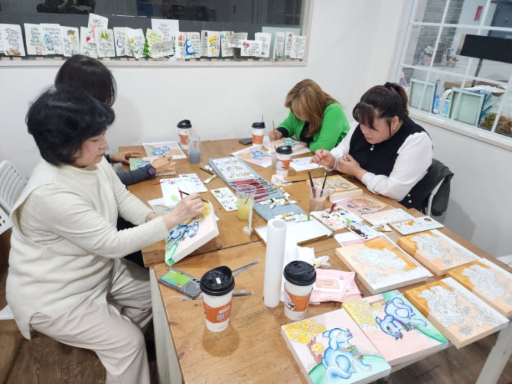 안녕하세요! 우리동네 예술 아지트, 큰빛미술학원입니다. 나만의 시간을 갖고싶어하는 성인분들이 부쩍 늘었는데요~~ 오늘 열기가득한 성인반 미술수업을 생생하게 공유해드릴까 합니다. 나를 위한 온전한 2시간 ,힐링 민화그리기 오늘 성인반 수업에서는 귀여운 강아지와 화사한 꽃이 어우러진 민화 채색작업을 했습니다. 초보자도 걱정없어요. 도안부터 채색기법까지 가이드해드립니다. 몰입의 즐거움 붓끝에 집중하다보면 어느새 복잡했던 생각은 사라지고 마음이 편온해지는 '아지트 테라피'를 경험하실 수 있어요. ☕️커피한잔과 함께하는 여유로운 작업 따뜻한 커피한잔 곁들이며 도란도란 이야기도 나누고 오직 나만의....... <img src="https://blogthumb.pstatic.net/MjAyNjAyMjRfMjY1/MDAxNzcxOTEwMDQwNTk2.CAlZ4evdLTTGugnpGaDD3xzkzuzm_s7o08KXM70Pcz4g.oyGGn3vTAYNBUbHvBbF1wTThBr-72HwFY9vPLZ_U4tYg.JPEG/900%A3%DF20260224%A3%DF113535.jpg?type=s3" />